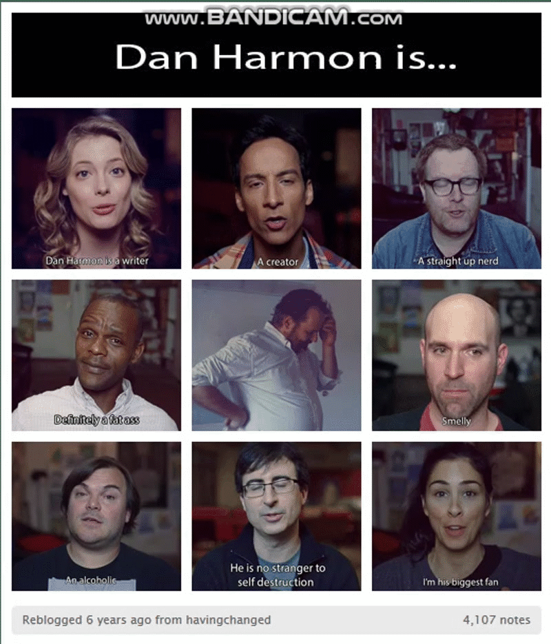 Ta niedorzeczna produkcja powstała w roku 2009 ale niedawno zyskała drugie życie. Zaczęła na nowo krążyć po internecie w roku 2018. Doprowadziła do bojkotu Dana Harmona i w konsekwencji skasowania przez niego konta na Twitterze.