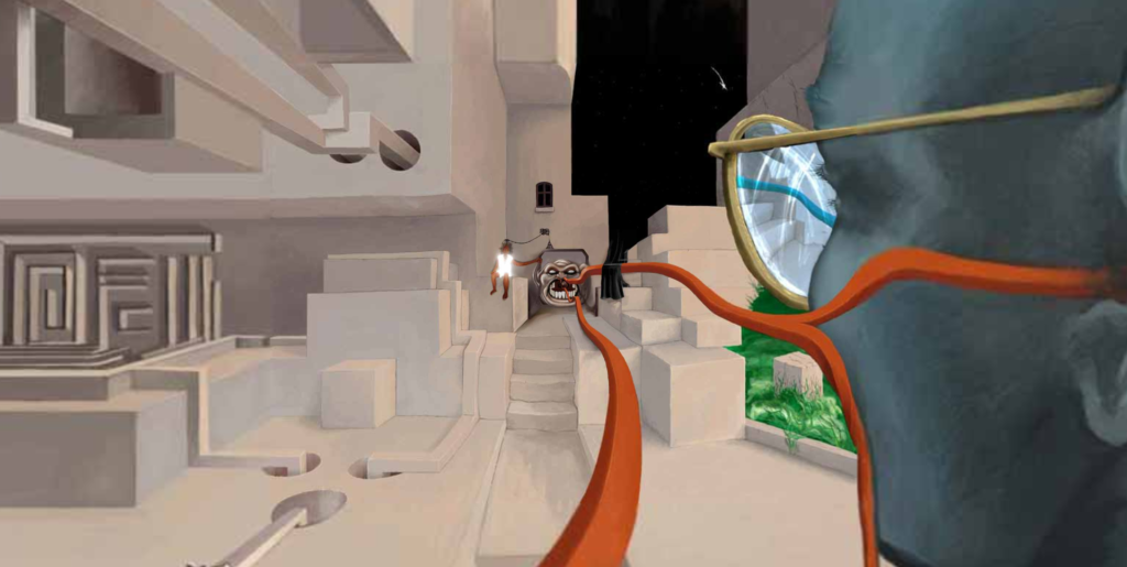 O co chodzi? O to, że widzimy surrealistyczny obrazek, który się przybliża. Chciałoby się powiedzieć, że w nieskończoność, ale jednak dosyć szybko następuje pętla.