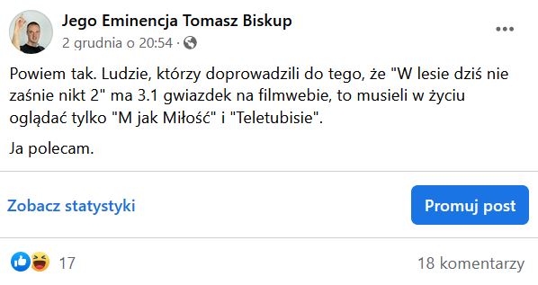 Po dwóch latach obejrzałem go jeszcze raz z rodzicami. Bardzo im się podobał, ale mama przez cały seans dopytywała się, dlaczego twierdzę, że to jest komedia.