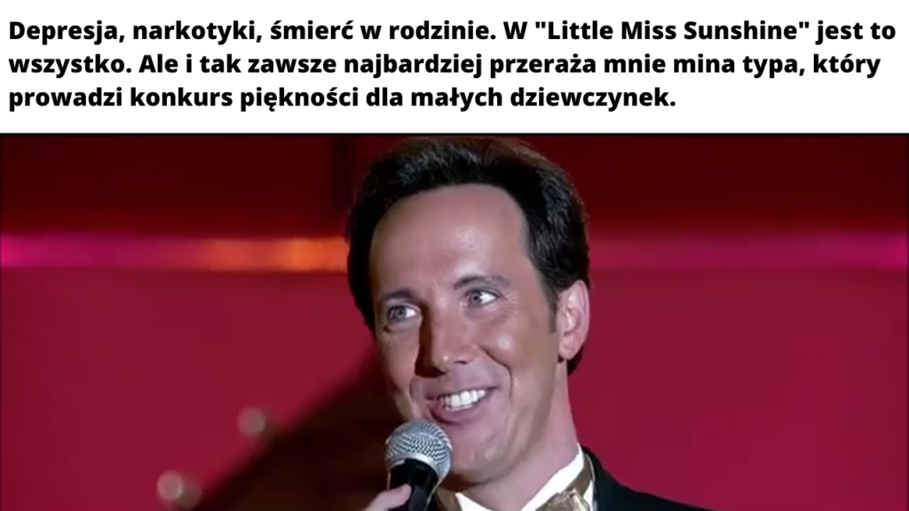 Wszyscy razem wyruszają w podróż, żeby zabrać Olive na jej wymarzony konkurs piękności dla małych dziewczynek. Ten film zaskoczy Was wielokrotnie. Zarówno czarnym humorem, jak i swoja wszechobecną dziwnością.
