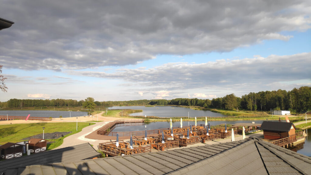 Hotel leży pod Chojnicami w otoczeniu naprawdę pięknej natury (notery?). Ma taras restauracyjny wychodzący na jezioro i kawał lasu dookoła (oraz Żabkę tuż pod drzwiami, co dla wielu osób może być istotne).