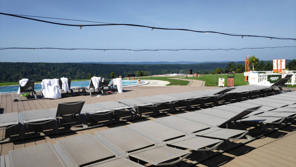 Z tarasów i balkonów widać bieszczadzkie wzgórza i lasy. Na miejscu można korzystać z boiska, stadniny, strzelnicy i oczywiście basenów. Numery pokoi są liczone w tysiącach a restauracje są trzy (przy czym w jednej z nich można by mecz rugby rozegrać…)