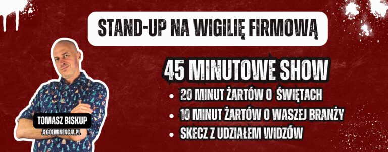 Stand-up na Wigilię Firmową to sceniczny odpowiednik filmowej komedii świątecznej. Show stworzyłem z myślą o grudniowych christmas party. Program trwa 45 minut. Opowiadam w nim wyłącznie lekkie żarty. Nie przeklinam, nie dotykam tematów politycznych ani wulgarnych. 20 minut występu to żarty na temat świąt. Kolejne 10 piszę na temat branży klienta. Do tego dochodzi jeszcze … Czytaj dalej Stand-up na Wigilię Firmową